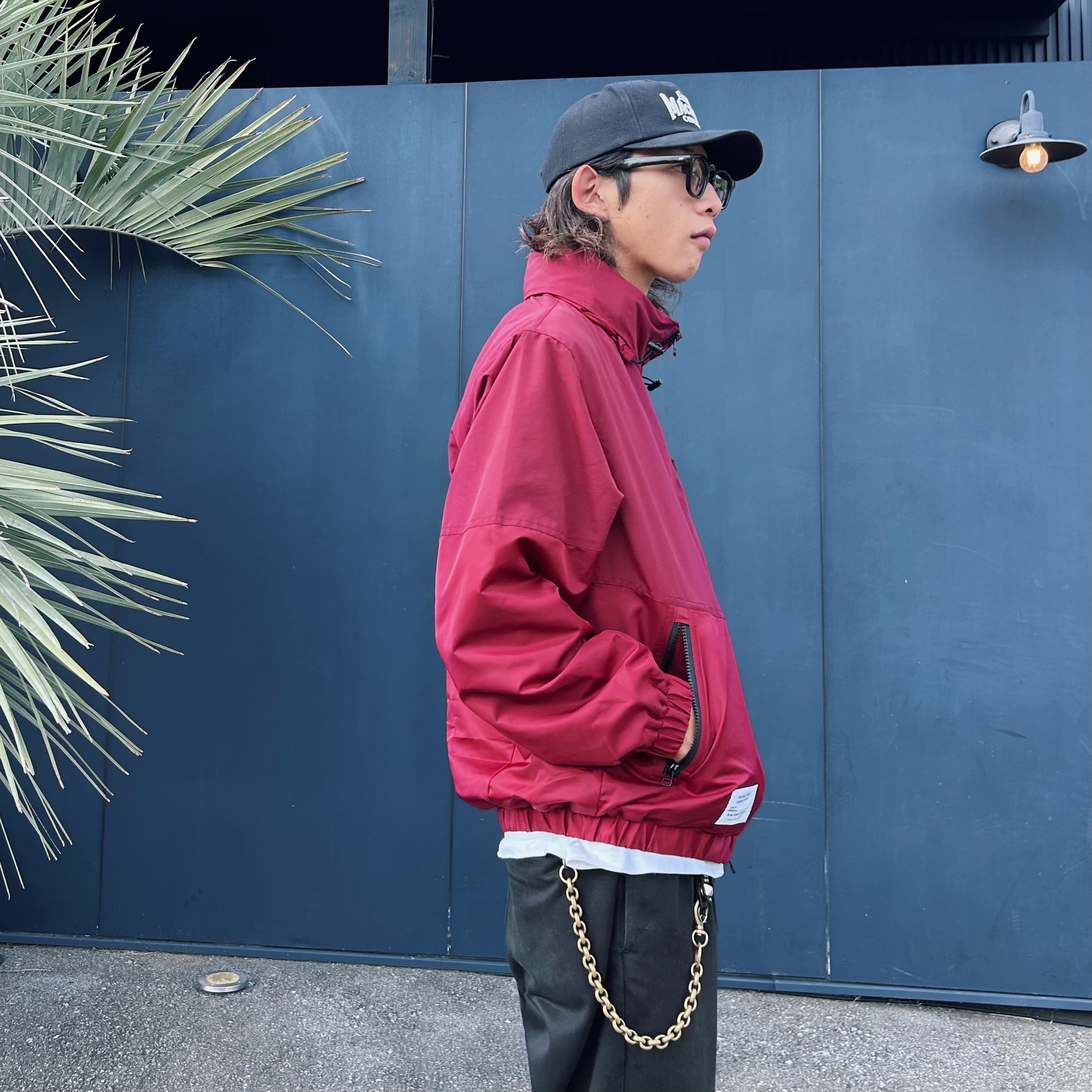 ‘90年代にNIKEやReebokで流行したバイカースポーツ系ジャケットを バイカールックにアップデートさせたオールドスクールウォームアップJK。