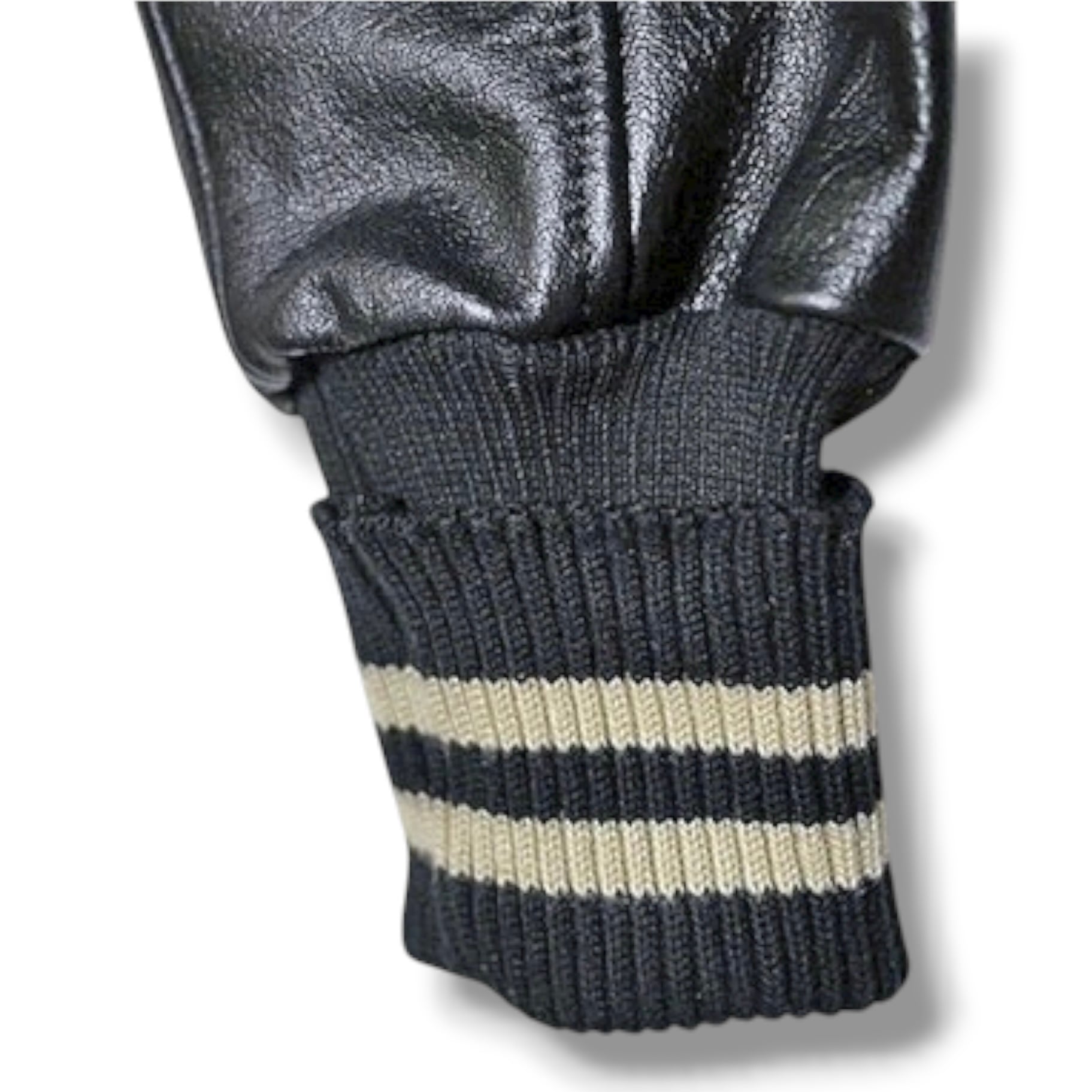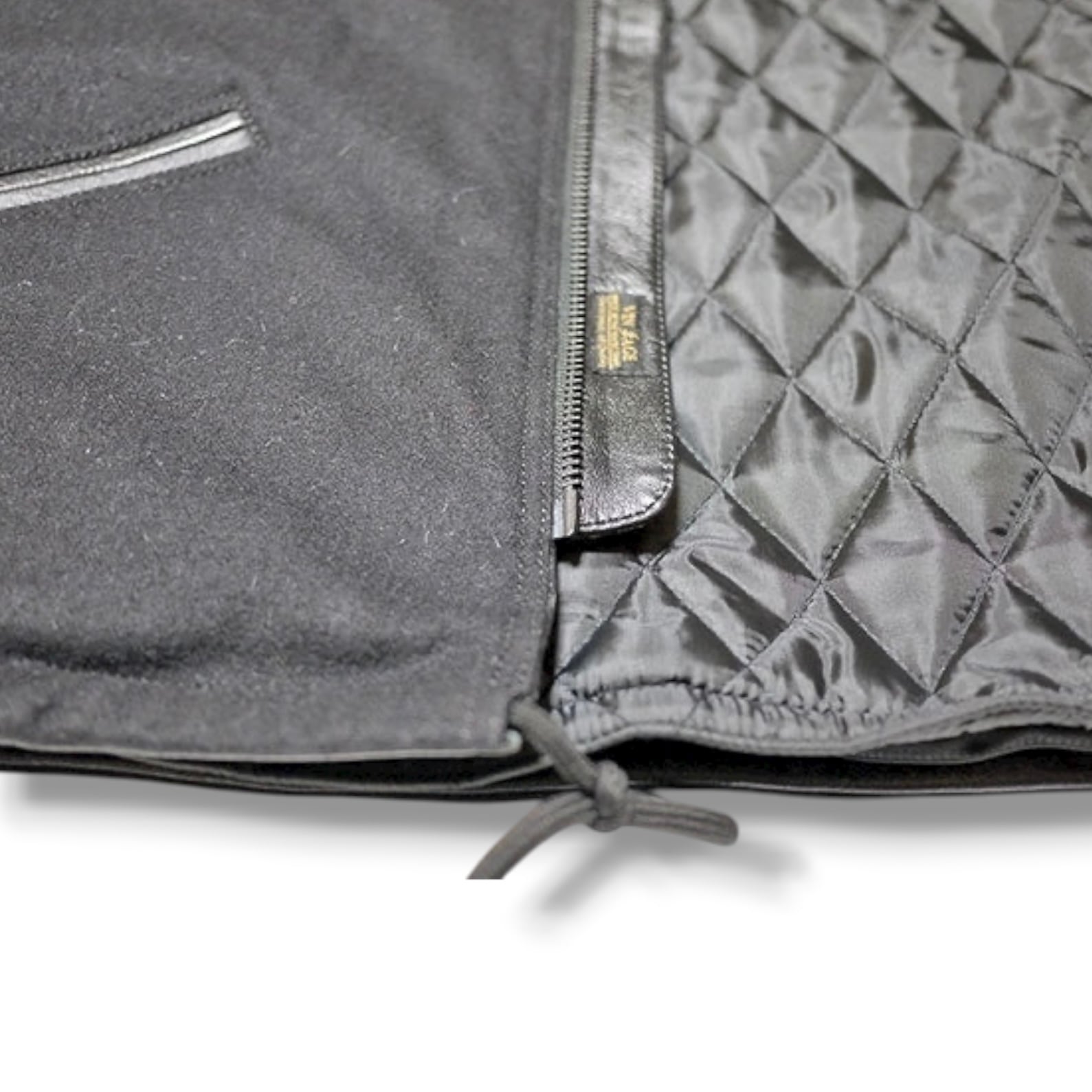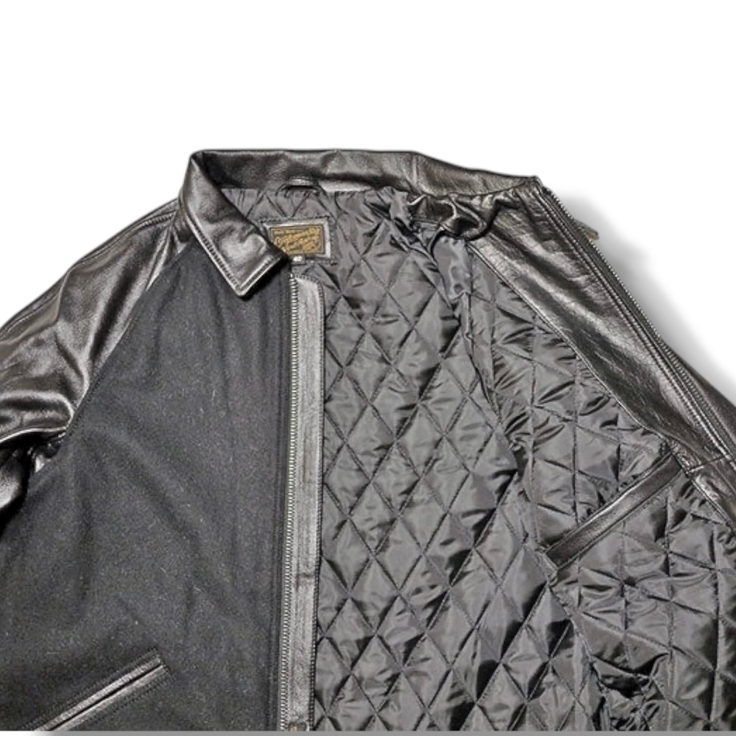 メルトン素材×牛革(袖)のジップアップファラオジャケット。