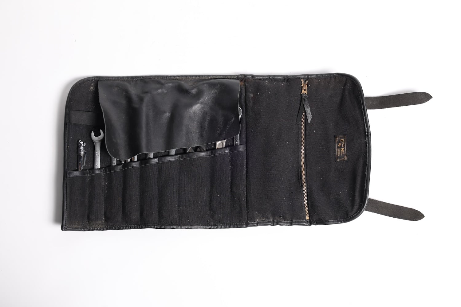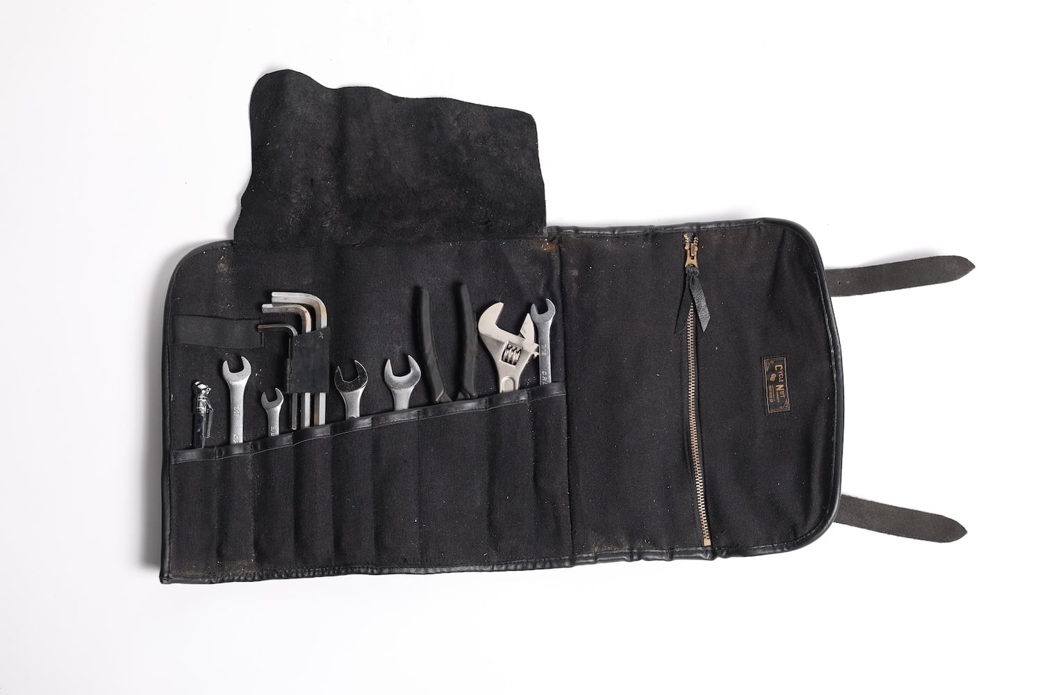 ブラス製ローラーバックルバックルを採用した使い込む程に経年変化が楽しめるツールロール。