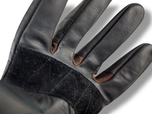 オペロンニット(ポリウレタン弾性繊維を芯に使用した、高い伸縮性、耐久性、ドライクリーニング耐性を持つニット素材です。)と上質な素上げ牛革を組み合わせることで、柔らかさと耐久性を両立。指の襠にはストレッチ素材を採用し、操作性とフィット感を高めています。