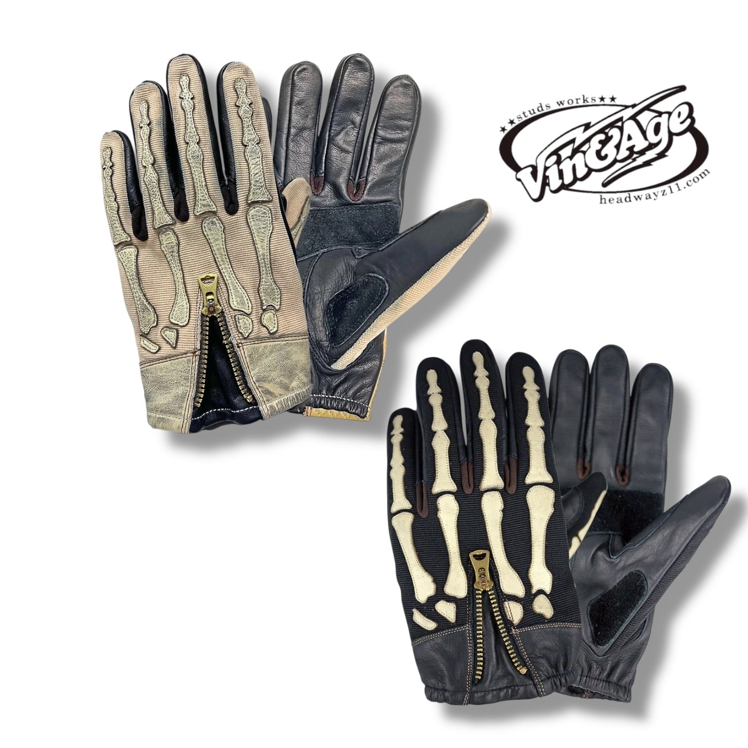 スケルトングローブ レザーグローブ 牛革 オペロンニット 真鍮ジッパー メンズ Vin & Age ヴィンアンドエイジ TYPE VG25_26 SHORT PLAIN GLOVES