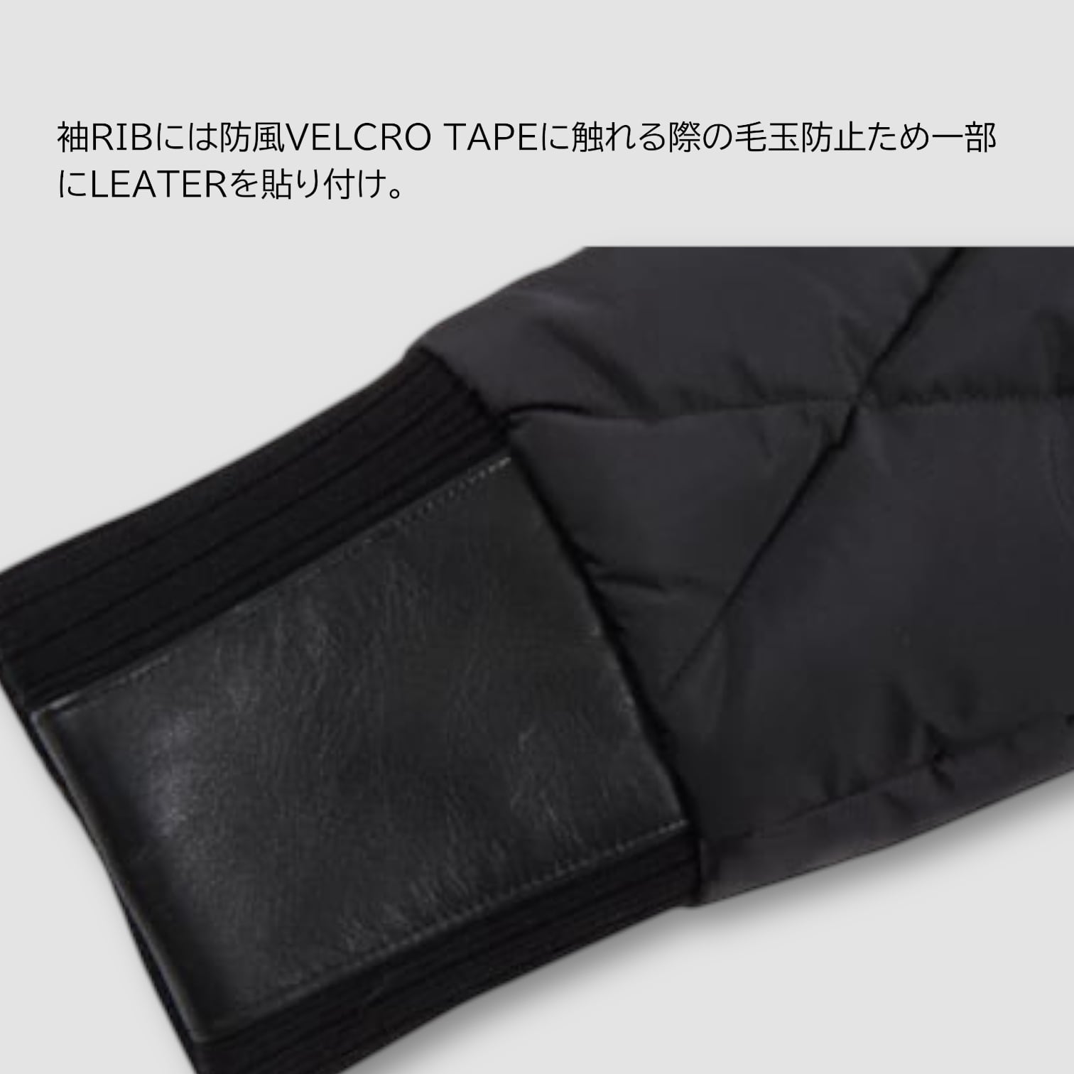 LININGは真冬のRIDINGでも最高の肌触りを保証。DOWN PACKは空気を良く通し羽の出ない最高品質の生地を使用。街中では暖かくなりすぎるため、体温調整用にベンチレーション機能を装備。ニットパーツには防風性、防寒性、静脈効果を高めるためネオプレーンを内蔵。 ZIPPERはUNIVERSAL 2WAY ZIPPER,SNAPにUNIVERSAL SNAPを採用。袖RIBには防風VELCRO TAPEに触れる際の毛玉防止ため一部にLEATERを貼り付け。その他ドローコードダックテイルずり上がり防止機能、内ポケット、チケットポケットなどRIDINGに適したPARTSを多数採用。