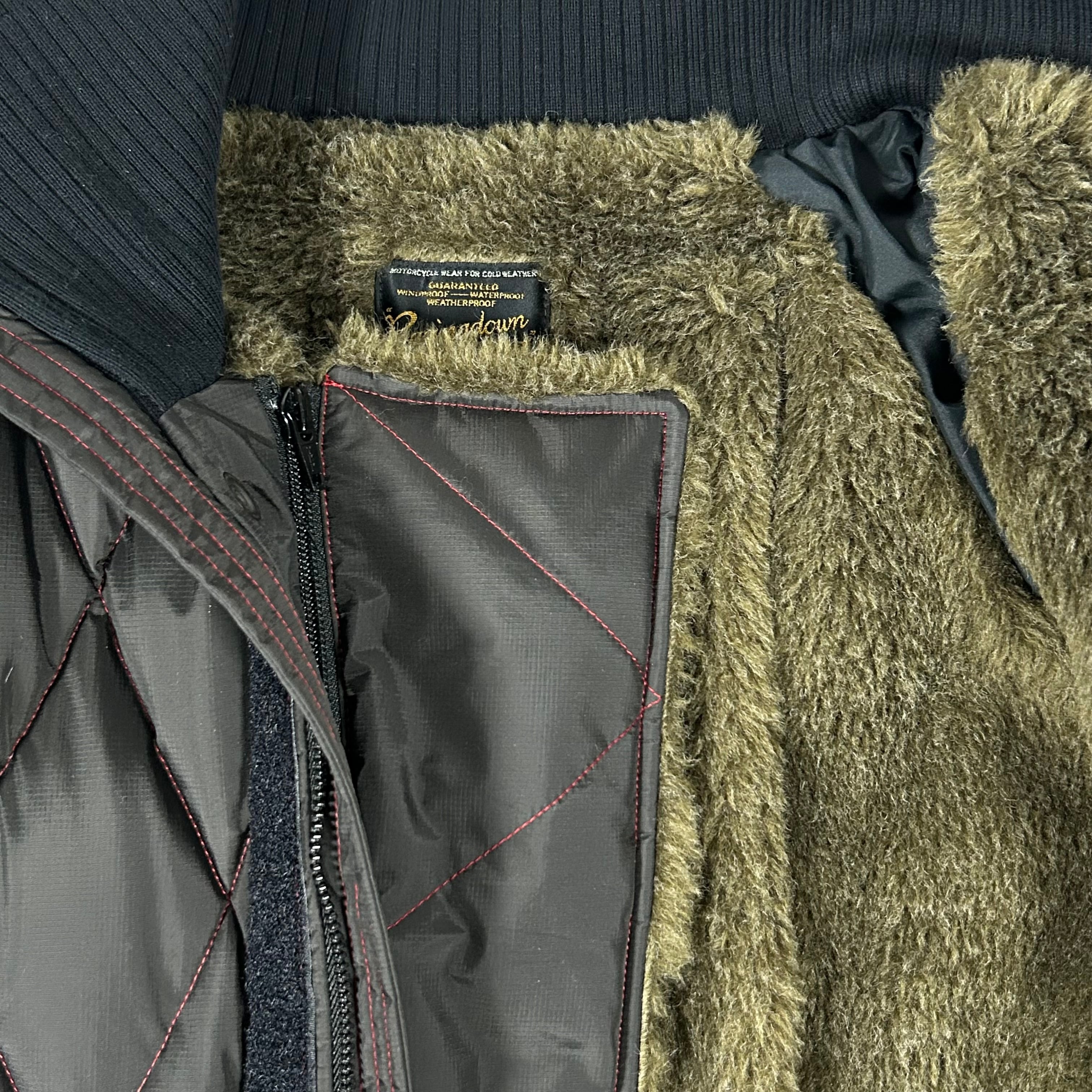 LININGは真冬のRIDINGでも最高の肌触りを保証。DOWN PACKは空気を良く通し羽の出ない最高品質の生地を使用。街中では暖かくなりすぎるため、体温調整用にベンチレーション機能を装備。ニットパーツには防風性、防寒性、静脈効果を高めるためネオプレーンを内蔵。 ZIPPERはUNIVERSAL 2WAY ZIPPER,SNAPにUNIVERSAL SNAPを採用。袖RIBには防風VELCRO TAPEに触れる際の毛玉防止ため一部にLEATERを貼り付け。その他ドローコードダックテイルずり上がり防止機能、内ポケット、チケットポケットなどRIDINGに適したPARTSを多数採用。